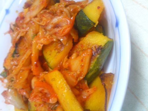 カボチャを炒めて、キムチとあえるだけ!❤ 超簡単なのに、立派なおかずになっちゃう キンキンに冷やしたビールにも合うからオススメ❤