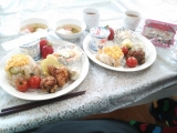ポテトサラダとす飯を混ぜたサラダごはんに子供の好きな1品♡ からあげ♪お子様らんち♡ だんごのお汁♡