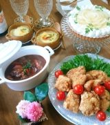 おはようございます(´ `)ノご訪問ありがとうございます先週末に、パパのお誕生日のお祝いをしました(๑´ڡ`๑)v 前日にケンカwwしたから、次の週末にしようか…とも思ったけれど、かいクン風邪っぴきの為、引きこもりだったので、朝からお料理に没頭してみましたww 時間かけた割には、コレだけ(笑)手際悪すぎて、嫌になっちゃう( ̄▽ ̄;)でも、とりあえず、ゴロゴロお肉たくさんっ!!!まずは、ケーキ 桃のタルトパパは、私が作ったスイーツとか、あんまり食べないのですが、前にタルト作ったときは、食いつきが良かった気がしてww タルト&ダマンドは、ばっちりな仕上がり(〃艸〃)…が、デコレーション微妙Σ(|||▽||| )でも、美味しくできました♡私と子ども達で、ほぼ食べ尽くすwwパパには、甘すぎたみたいΣ(|||▽||| )それから、 ケンタッキー風フライドチキン大きめお肉に、かぶりつくww ホロホロお肉がゴロゴロ、ビーフシチューボジョレーも使って、3時間煮込みました(笑) モニターのつくれぽもww バター好きの♪Xmas簡単ポテトグラタン by ラーマ♪ 他には、パンやら、ご飯やら、、、毎年、パパの仕事の付き合いで買うボジョレーで乾杯前祝いしたもんだから、当日おめでとうって言うの、危うく忘れるところでした( ̄▽ ̄;)プレゼントは、、、どうしましょ(笑) 昨日は、お家の最終確認をしてきました(´∀`)ついでに、照明の取り付けも♪来週の日曜日に、引き渡しになります…さて、いつ引っ越せるのやら色んな手続きやら、準備やら、やる事多すぎて、放棄気味です…( ̄▽ ̄;)でゎでゎ1週間頑張りましょ ランキングに参加していますよろしければ、ポチッとして頂けると嬉しいですレシピブログに参加中♪ いつもありがとうございます 【2014東京西川】ドルメオ futon 三つ折敷布団 一層タイプ 5名様 続きを見る