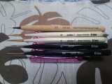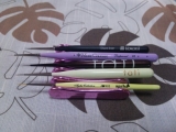 今更ながら 手持ちの アート(ライナー)ブラシの使い勝手を試してみましたょ まずは手持ちのブラシから 今は2軍落ちのこの子たち 奥から スペース ネイル 白猫玉 毛 筆クリスノ M 、 S ( 2 本 ) 、 XS 白軸のクリスノはコリンスキー?らしいです 正式 な 商品名 調べるの 面倒 なんで … 間違ってたら ゴメンナサイ (ノД`) クリスノは、当時かなりお気に入りでライン買い 昔っから商品よりもメーカーに惚れ込む傾向にあるようです 1軍選手と候補生 (候補生=未使用) 毛先を揃えて写真撮れば良かったね 奥から K O K O I S T ショートライナー筆 モアジェルブラシ ライナー6mm 新 tati 筆 アートショコラchouchou 旧 tati筆 ageha先生 筆 アートライナーM が付いてるのがおNew(=未使用) 使ってみたょ …コレじゃわからんね 並びは 右からKOKOISTageha先生筆となってて、1つ上の写真の手前から順になってます ↑ 説明 わかりづらい … アートがバラバラ(ってかアートのもおこがましい )けど… ※ 以下からは あくまでも 個人的 な 感想です 直線: やっぱり細く描けるのはモアジェル でも長い線を描くなら新tati筆が良かったです 新tati筆はジェルの含みが良いのかなぁ? 曲線: 毛質が柔らかいのかな?KOKOISTが1番急カーブの曲線でも描きやすかったです ただ、柔らかいせいか線がちょっと太くなる 私には使い慣れてる旧tati筆がベストでした ペイント: 大して差はないかなぁ… 若干の毛量の差で、ageha先生&新旧tati筆がやりやすかったかも 引っ張る: ドラッグ系アートはtati先生の十八番?だからでしょうか やっぱり新旧tati筆がやりやすかったです …まぁ、まだ1回だけの使用ですから何ともですけどね まだ候補生のラウンド系アート筆も控えてるので 、気が向いたら記事にしようと思います 最後に ちょっと応募してみようと思うのでペタリ ジェルネイル長期モニター5名様大募集!合計14,332円相当 ←参加中 当たると良いなぁ Candyからの投稿