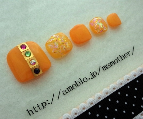 ジューシーなオレンジカラーにスワロやホロを使ってキラキラさせました