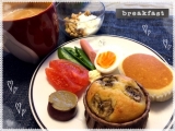 こんにちは リハビリから戻り、お昼を食べ、珈琲を入れてほっとひと息ついております(o^^o) 水曜日の晩に、中2娘がバナナマフィンを焼いてくれました♪ {51B8A202839A40B0B4934A4094B451F901} 次の日の朝ごはんに食べよう という事で、 木曜日 {E8A22C127BCA4F09A581B34EB68BC16501} バナナマフィン、ミニチーズ蒸しパン、ゆで卵、スナップえんどう、ポールウインナー、トマト、さつまいもの甘煮、フルグラヨーグルト、珈琲♪ 本日、金曜日 {58C28633AED04CFD9862B5861D66D4FD01} マヨマスタードトースト、ベビーリーフ、スパニッシュオムレツ、きんぴら、さつまいもの甘煮、フルグラヨーグルト、珈琲♪ ーーーーーーーーーーーー 午後はまったりですが今日の晩御飯、まだ決めてないので、料理本とにらめっこします( ´ ▽ ` )ノ ではでは ーーーーーーーーーーー http//moniplajp/bl_rd/iid210406378354e3fab53f68a/m53a82b823bf70/k2/s0/ http//moniplajp/bl_rd/iid37957074054f51505101e4/m53a82b823bf70/k2/s0/ 続きを見る ['close']