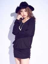 ドルマンゆるピタ長袖カットソーワンピース■10名様モニター募集今回は、裾シャーリング入り細見せ効果抜群★ V字ネックラインでSexyな後ろ姿を演出! [ドルマンゆるピタ長袖カット 続きを見る