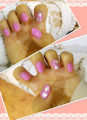 春にしたネイルです! 大好きなピンクをベースに春っぽく お花をとりいれました(^^)!