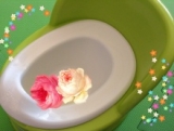 前回の記事に引き続き、モニター品のレポートです今回は、リッチェルさんのプチポッティですこちら、オマルなんですが、なんと新生児から使えるんです白いポットの部分が外れるようになっていて、支えながら新生児の時期からオマルに排泄させてあげれるそして、イス型のオマルとして、長ーく使えるという優れものです布おむつ育児をサーチしている時に、おむつなし育児なるものがあることを知った私ホーローオマルという、ホーローポット型の、新生児から使えるオマルがあるのですが、どうせなら長く使えるものがないかなーと探して見つけたのが、このプチポッティでしたプチポッティを使ったママの声の中に、赤ちゃんのサインに敏感になったというものがあって、それが印象的でした私も布おむつを使う中で、jinjinの表情の変化に敏感になったと思うので、プチポッティを使ってみたいなーと思いました箱を開封すると、中に、便座カバーもついていましたこれは嬉しいですね!冬になったら使いますで、早速jinjinが挑戦今までの経験から、jinjinがおしっこするのは、授乳中とその直後がほとんどそこで、授乳が終わってゲップをさせてから、おむつを取って白いポットをあててみましたシーなんと早速成功思わず証拠写真を撮ってしまいましたが、自主規制で笑この白いポット、先の部分が少し内側に反り返っているので、男の子のおしっこが少し上に向かっても、外に出ちゃわないナイスデザインポットも軽くて扱いやすいです大成功の初日から使い始めて、おしっこはかなりの確率で成功しかし、うんちは未だキャッチできずです頑張ってjinjinのサインを分かってあげたいな!そしてまだこの白いポットをあてながら授乳はできていませんjinjinの体を支えながら、ポットをあてるのが意外に難しくて慣れたらいいなまた引き続きレポートさせて頂きます!そして、番外編でプチポッティと一緒にリッチェルさんがベビー用品のカタログを同封して下さっていましたリッチェルさんの商品は、デザインが可愛くて、便利なグッズが多いのでカタログを見ているだけでワクワク一緒に見ていた主人が「このカメ欲しい!」と言って購入したのがこのカメさんの歯固めです落ちないようクリップもついていて、ケースもついています可愛くて、jinjinも頭からかじってくれていますベビー用品って本当に見ているだけでも幸せですねリッチェル プチポッティ グリーン/リッチェル¥4,536Amazoncojpリッチェル プチポッティ ピンク/リッチェル¥4,536Amazoncojpリッチェル 歯がため ホルダー付R(かめさん) グリーン/リッチェル¥864Amazoncojp暮らしの中に…リッチェルファンサイト参加中