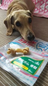 ペットの専門店コジマの商品うれしいおやつデンタルケア『馬皮ガム 骨型』6本入りのモニターに当選しましたiv>我が家のアンジュは、牛肉アレルギーです牛肉はもちろん牛タン牛皮も避けていますそのため、市販のガムが与えられないんです歯みがき系のおやつは、牛皮の含まれているものが意外に多いんです豚皮を買ったことはありますが、不評でしたそんな理由で今回応募させてもらいました【原材料】馬皮、卵黄粉末【1本あたりのエネルギー】約20kcal【原産国】日本わんちゃんの歯の健康を考え、良くかむことで歯の汚れを落としておいしくデンタルケアができるおやつですなんといっても国産♪これは必須ですアンジュ(牛肉アレルギー堅いおやつは比較的に好き)与えてみて・・・とても食いつきがよく、奥歯でよく噛んで楽しんでました、1020分ほどで食べ終わっちゃいますが、ここまで噛んでくれると歯みがき効果もありそう、そして噛んだあとは疲れるようで寝てしまいますフルール(アレルギーはないが、小さくなると飲み込む癖がある)与えてみて・・・奥歯を2本抜いたばっかりなので、噛むんだけど、噛みきれない感じでした30分噛んでも少し小さくなっただけでした馬肉は普段から与えているので、馬皮に抵抗はありませんでしたそして1本あたり20kcalという低カロリーもおやつとして有りですモニターさせて頂きありがとうございます牛肉アレルギーのアンジュでも最後の1本も美味しくデンタル出来ました(^ー^)ノ♪http//moniplajp/bl_rd/iid110796258458e314414b0b8/m53f4aefb1256a/k1/s0/