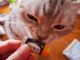 モニター当選@シーバとろ〜りメルティ January 14 [Sat], 2017, 2308 モニター当選しました! 今回は猫のおやつです〜 ペットの専門店の「コジマ」さんからいただきました!! 「シーバのとろり」シリーズ!!!!! ペースト状のおやつは前からムサシの大好物で、 そのうえ好きな「シーバ」 そして3種類もいただきまして、 私もムサシも大感激です!!!! もう、袋から出した時点で目の前にきてましたから(笑) 封をきったら、もう早い! こちらも慌てて中身を押してたら 鼻の頭についちゃって それを知らずに押していたので 「おいしすぎて、鼻からなんかでてきちゃった!!」と焦ったほどです(笑) 途中止めると催促されました 食べるのに必死でいろいろな表情をみせてくれましたよ 鼻にしわつくってまでも必死で食べてます(笑) もうないのに、最後までぺろぺろと十分ご満悦だったようです!! 味を変えてみました やはり、開けてないのにすぐによってきました もう、形でなんのおやつだか、わかっているのかな〜 手から与えられるので 私も幸せ〜(笑) 普段は抱っこも嫌いだし、人にあまり近くにこられるのも 好きじゃないムサシだけど、 膝の上に前足を乗せて食べてくれます ほんのり感じるムサシの体重がまたまた私を幸せにしてくれます!! 夢中でおいしくておいしくて仕方ないみたいです もう、何がでてきたのかわかってるんですね すぐに近寄ってきて、顔をスリスリ 待っていられなくて、口をもってきて、封があいてないのに ぺろぺろはじめましたよ ちょっとじらしてみました〜(笑) 今回はお皿の上にあけてみたんだけど、 催促して手をのばしてきましたよ もう、早い早い 息もつかずに食べてまして 1分かかったかな??? それくらい早く完食しました〜 どの味もまったく抵抗なく おいしそうに、食べてました 食べ終わった後は、もっと食べたいと満足感がにじみ出た顔になります ムサシも大満足、私もムサシを近くに感じ 手からおやつを与えられる… 続きを見る