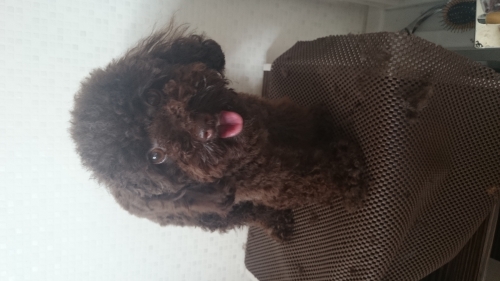 自宅トリミング後にご褒美待ちの一枚がとれたのでupヾ(oω)ノ トイプーのちょこちゃんです(p)