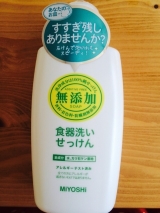 スーパーやドラッグストアなどで見かけ気になっていたミヨシ石鹸さんの『無添加食器洗いせっけん』今回お試しさせて頂きましたヨーロッパのメディカルアロマテラピーの資格を取得した時に経皮吸収の仕組みについて知り、同時に界面活性剤の怖さも感じてから食べ物だけでなくハンドソープやシャンプーなども成分を確認し無添加の物を使うようになりましたミヨシ石鹸さんはたくさん無添加商品出されているので洗濯の『無添加衣類のせっけん』なども愛用していますいつも食器洗いの時はゴム手袋をしている為、今までは食器用洗剤は油汚れが落ちやすい物を使っていましたですが、ゴム手袋をしない時もありますし、主人が洗ってくれることも多いのもあって、最近になり環境にも手にも優しい食器用洗剤を使うようになりましたそんな時にお試しさせて頂けたので、大変感謝しています到着後、さっそく使い始めましたこの食器洗いせっけんは目が粗く少し固めのスポンジがオススメらしく、家にあるスポンジがまさにそうだったので、少量での泡立ちもとても良かったですびっくりしたのが、さらさらのテクスチャーさすが、着色料、防腐剤など合成成分を一切含まない無添加無香料なだけあり今までにないテクスチャー石鹸特有の香りはありますが、安心感がありますし私は気になりませんひどい油汚れは落ちにくいですが、キッチンペーパーなどで拭き取ってから洗うようにしていますただ、注意事項として『とっても滑りやすいのでお気をつけください』とありましたが、私の不注意で手が滑りお皿を割ってしまいましたもう少し滑らなければありがたいですが、手荒れも心配ないしまた使わせて頂きたいと思います 続きを見る