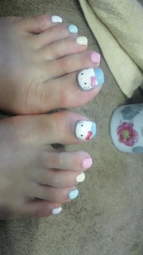 足にまでキティちゃんキティちゃん大好きだから、キティちゃんネイルやめられなーい! 3Dのキティちゃんだから、靴をはくと少し痛かったな笑 おしゃれは我慢