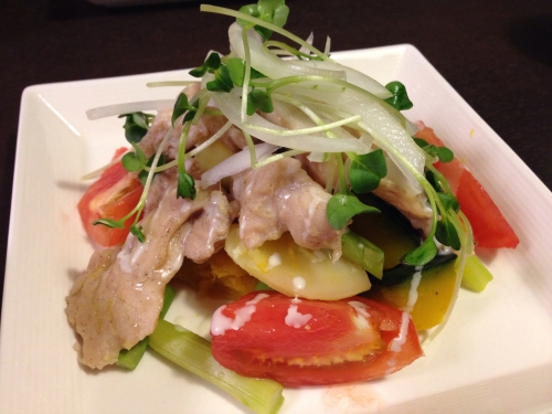 1枚目鶏胸肉の温野菜サラダ →胸肉は生姜と醤油に漬け込みますその後レンチンでしっとり柔らかに! 2枚目厚切りベーコンとブロッコリーのオイルパスタグラタン →厚切りにすることでボリュームを♪オイルはオリーブオイルにニンニクとローズマリーを漬け込んだものを使用ホワイトソースも手作りです^ ^ 3枚目高野豆腐の包み煮 →高野豆腐を油揚げで包んで出汁で煮込みました …続きを見る ['close']