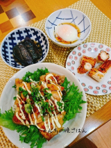 富士食品工業ファンサイト参加中こんばんは先週の晩御飯です照り焼きチキン丼温泉卵ナスの揚げ浸しちくわの明太マヨチーズ詰め照り焼きチキン丼富士食品工業さまより、たくさんモニター商品を送っていただきました「今日は俺が作ります!」シリーズより6種類どれもイケメンたちが、フライパンをふっているんですこの中から、照り焼きチキン丼をチョイス照り焼きチキンは子供たちも大好きです緑のさわやかな照り焼きチキン丼作り方は裏面にありますメインの食材だけ用意すれば大丈夫このような丼用調味料が、1食分ずつ3袋皮のほうから、弱火でじっくり鶏もも肉を焼いていきましたじっくり焼くと皮もぱりぱりあとは、合わせ調味料をいれて、軽く絡めるだけで完成です鶏肉には特になにもしていませんが、いい感じにタレが絡んでつやもでています甘辛い味が、食欲をそそるこれもこなつも息子も好きな味夫の分は、ご飯の上にレタスを載せて、照り焼きチキンを食べやすい大きさに切り、マヨネーズをかけて、ねぎを散らしました簡単↓業務用から家庭用まで幅広い商品があります富士食品工業株式会社ちくわの明太マヨ詰めちくわを半分に切って、かねふくさんの明太マヨネーズをチューっと注入して、表面だけ軽く焼きました普通のマヨネーズのチューブにはいっているので、使いやすくて便利です温泉卵パナソニックビストロで作りましたグリル皿に並べて、温泉卵のメニューにあわせて、ぴっと押すだけ出来立ては温かいので、なお美味です茄子の揚げ浸し簡単で、すぐに一品増やせて、夫も喜ぶ、神のような一品 ←ポチっと応援いただけると、励みになります 「晩御飯」カテゴリの最新記事 (function(){ RelatedArticlesload('ldblog_related_articles_d… 続きを見る ['close']