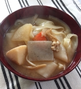 モニプラさんのイベントで、【日本の麦の底力】上州の郷土料理おっきりこみセットが当選しました 弥生時代からの小麦の産地、上州 ひもかわうどんのおっ切り込みご膳(煮込み野菜とみそスープ付き) 他に何も加えず、かんたん調理ありがとうございます! アレルギー体質のため、小麦は国産、小麦製品は出来るだけ国産を使っています なので、国産小麦にこだわった麺がとてもうれしいです 美しい真っ白い麺 具材も全てうれしい国産 味噌スープはとってもやさしい味、しかもしっかり味もつきおいしすぎです 具材もやわらかくごろごろ入ってうれしい 平たいもちもち麺も最高です ざるうどん風にも こちらは、ツルツルも加わり更に好み! 麺にきなことお砂糖をまぶして〔やせうま〕風にもしてみたよ ツルツルやせうまになりました このたびは、安心の国産小麦使用のとってもおいしい麺を試させていただき感謝です! もし、上州に遊びにいったら、お土産にセレクト間違いなしです 日本の麦の底力ファンサイト参加中 続きを見る ['close']