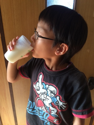 我が家の二男三男より細くて小さくて… こんなに美味しいのを飲んで背が伸びるなんて嬉しいと言ってます!