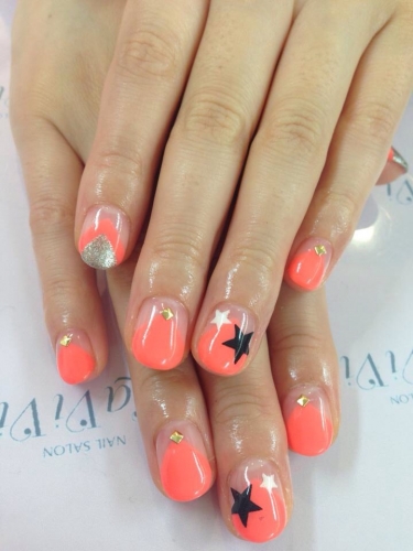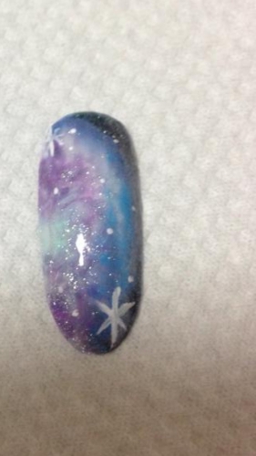 BlackLightで変化するカラー アートでごちゃごちゃさせずに 短めの爪の人でも指長効果があるデザインに仕上げました