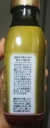 おはようございます" width="16" height="16" />今日の朝ごはんに「DANTEエキストラバージンオリーブオイル」 を使って簡単なカクテルサラダを作りましたモニプラで当選いただいたのでご紹介します エキストラバージンオリーブオイルって何私、普通のオリーブオイルとあまり区別がつかなかったのですが、調べてみるとオリーブの果実を搾ってろ過しただけの、一切化学的処理を行わないバージンオイルのこと酸度が低くて新鮮、果実そのもののフルーティーな味わいだとか「DANTE」 は、1898年にイタリアで商標登録された歴史あるブランド銀座「ラベットラダオチアイ」のオーナーシェフも認めた銘柄です 炒め物などに使ってもいいけど、今日はその味わいを確かめるべくシンプルにサラダにして戴きます大根人参きゅうりを同じ大きさの賽の目切りにしてオリーブオイルをかけます お酢塩コショウを適量なじませた後、香りづけとしてシークワーサー果汁を垂らし(レモンより芳しいので私はよくシークワーサーを使います)少し置いたら出来上がり 今日の朝ごはんは 「DANTEエキストラバージンオリーブオイル」 のカクテルサラダオムライスしらすのコンソメスープでしたあれ、なんかオムライス&スープの写り具合がちょっとおかしい…すみませんサラダは、オイルがコクがありながらすごくさっぱりしていてしつこい感じが全然しませんでした私の中で、油のさっぱり具合ってサラダ油>オリーブ油>ゴマ油だったけど、「DANTE」 だったら 圧倒的にオリーブ油>サラダ油>ゴマ油になると思いましたとにかく うまいこの美味しさは、開封して早めに&やはり加熱せず味わいたいのでおいしいパンを用意してまた食べてみよう「DANTE」 があれば、おうちのイタリア料理が調味料はそのままでもおしゃれレストラン風な味に近づきます「DANTEエキストラバージンオリーブオイル」 とってもオススメです 日本製粉株式会社のファンサイトファンサイト参加中日本製粉株式会社DANTE エキストラバージンオリーブオイル 続きを見る ['close']