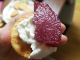 中垣技術士事務所さんの、有機アロニア100%果汁 (300ml)をモニターさせていただきましたありがとうございますこのアロニアという果物、北海道でも最近あちこちで栽培されるようになってきてて加工品もいろいろ販売されてるので、私は名前だけは知っててただ、あまり詳しいことは知りませんでした見た目通り、ベリー系の果物のようですねポリフェノール含有量が多いため、渋みが強く生食向きではないようですが、ヨーグルトなんかと相性がよくて、おいしくいただけるそうです一通り冊子に目を通して、まずは味見こうして写真を撮ってると、ものすごく顔を近づけておチビちゃんが狙ってますあまりに欲しがるので、どんな顔するかなと思って飲ませてみたら、すっごい不味そうな顔をして逃げていきました2歳児の口には合わなかったみたい続けて私も飲んでみたところ…何だか赤ワインみたいな感じと思いました飲んだ後、口に残る渋みがやっぱりちょっと気になるかなヨーグルトにもかけてみましたこれは、三男はペロッと食べてしまいました食べやすくておいしかったみたいですちなみにポリフェノールには、酸化を食い止める力、菌に対抗する力 があるとされているんだとかそして、そのポリフェノール以外にも、アントシアニンやβカロテン、βクリプトキサンチンなどの栄養素も豊富に含まれているようですブルガリアなど東欧諸国の人々は、メディカルフルーツと呼んで、ジャムやジュースとして利用しているそうですよ何だか、いろんな効果が期待できそうですね有機アロニア100%は、ブルガリアのオーガニック農場で収穫されたアロニアを原料として、食品添加物を一切使用せず、薬剤汚染のないように管理した工場で製造、正真正銘のオーガニック食品ですぜひ、いろんな方に知っていただきたいなと思いますこれ、ちょっと邪道かも知れませんが、味見をしたときに赤ワインみたいな味だったので、赤ワイン代わりに使って、梨のコンポート作ってみました有機アロニア100%果汁に、水と砂糖とレモン汁を加えてコンポート液を作り、梨を入れて少し煮ました子どもたちも気に入って、こうしてクラッカーに水切りヨーグルトと梨コンポートのせて食べていましたよかったらお試しを中垣技術士事務所 ファンサイトファンサイト参加中 続きを見る ['close']