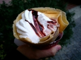 今年初のクレープです(^^) 福袋購入した時に食べたよ♪ チョコホイップクリーム シンプルにクレープの皮とクリームでいただきました!! やっぱり美味しいわ!!(´∇`) もはやクリームだけでもいいのではと思ってしまうよ(それクレープじゃないだろ) 続きを見る ['close']
