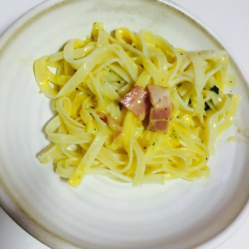 ベーコンと生クリームの感じがめっちゃ美味しいー!