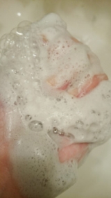 ニキビを防ぐナチュラル石鹸アロマティックソープ 毛穴、ニキビ、くすみなど肌トラブルに悩んでいる方いらっしゃいますか?そんな方にオススメの石鹸です( ̄Oノ ̄)①純植物性ベースで肌に優しい潤い処方★とても柔らかく肌になじみやすい泡でした!②毎日の洗顔で毛穴&ニキビ対策トラブルゼロの透明肌へ★実際に、私もおでこの辺りにニキビ痕があったのですが使い続けてどんどん薄れていきました(≧∀≦)③アロマの香りともちもち弾力泡で、内側からリラックス★このアロマの香りがオススメ!高級感ある香りとはまさにこの石鹸の香り!今まで使った中のソープで一番気に入りました なんといっても、真っ黒の石鹸が特徴的!なぜこの色なのかというと、、高濃度配合した炭の色だそう(ノ゚ο゚)ノ オオォォォこれは毛穴に詰まった皮脂をすっきり除去してくれ、毛穴を引き締める作用があるそうです人工着色料はフリーなのでそういうところにも安心感がありますよね(°∀°)b そして、一番気になっていたこのネット!色はシックなんだけど、可愛いヾ(@°▽°@)ノシンプルさの中にも女性らしさがあるといいますかお風呂場にこういうのがあれば、女子力高いなと私は思ってしまうかもです(笑) 使い方は、このネットの中にリングがあるので、中指を入れて石鹸を泡立てるそう何度か試してみたりしていますが、どちらかというと親指を入れてしたほうが、私は使いやすかったかな? 最初の方は少し泡立てにくかったですが、使い続ける事によって結構泡立ちやすくなってきましたどちらかというと、きめは粗めですが、弾力がしっかりある泡ですクリーミーさや香りがこの石鹸の一番の特徴ではないでしょうか この写真を撮るのにかなり苦労しました(´;ω;`)泡が目に入ってしかも結構目に入ると痛い何度目かの写真でなんとかこんなものが撮れました(^_^;)なので目の周りには泡がありません(笑)泣きすぎて、落ちました!!!顔に泡を乗せた時の、ふんわり香るこの石鹸の香りはとても高級感溢れる匂い女性らしく、こんな香りを纏う女性になりたいものです使う前に少し見えていたニキビ痕分かりづらいですが、ポツっと赤いものが見えるかと思います 使い続けると 目立たなくなっていき、どこにあったのかわからないですね(笑)おでこに赤いのがあって気になっていたのが、綺麗になってとても嬉しいですヘ(゚∀゚)ノそして石鹸後のケアとして、エッセンスウォーターとトリートメントセラムも一緒に試してみましたよティンタウニータ エッセンスウォーター(サンプル) 一応ウォーターを出しているのですが、無色透明のもので、わかりませんね(;´д`)オレンジの皮から有効成分を抽出した マンダリンクリアは、皮膚細胞のタンパク質゛ケラチン”に働きかけ、角質細胞に弾力を与えて、整列させることで、角質層の状態を改善皮脂を詰まらせることなく、排出するため、使い続けることでニキビができない肌質へ結構、独特な匂いがしましたさっぱりとしており、肌によく浸透していきますティンタウニータ トリートメントセラム(サンプル) ニキビからの復活に効く5つの成分配合EGF(上皮細胞再生因子)プロテオグリカンリンゴ幹細胞エキス油溶性ビタミンC誘導体ネロリ(精油)肌がとてももちもちに手を当てると吸い付くようなお肌になりますよ乾燥する空気、はげしい温度差、花粉、そんな季節でもつるつるたくましい肌をキープしたいですよね(゚д゚)(。_。)_。)肌トラブルに悩む女性に向けた商品です毎日の洗顔でニキビを繰り返すお肌をケアしましょう!気になった方はこちらからVitaNaturaleファンサイト参加中 4層できめ細やかな泡を作る隠れた名品「オーガンジーフォームネット」 続きを見る