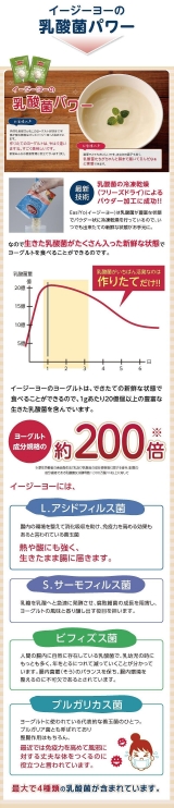 毎日食べるほど大好きなヨーグルト…* 最近好きすぎて、今度は自分で作ったのも食べてみたいな なんて思ってたんです!! そんなとき、今日モニターで発見しちゃいました(´ω`) 超簡単にできて濃厚で美味しいヨーグルト、イージーヨー* イージーヨーグルトって言うくらいだから、どれくらい簡単に出来るんだろ??!と思って見てみたら 専用容器に、イージーヨーのパウダーとお湯をいれて、一晩置くだけ!!! これは衝撃過ぎました… 本当にイージーや 手作りしてみたいけど、材料揃えたり、洗い物も増えるし(笑) 色々準備が大変そうだ…って思って避けてきたわたしの考えが、一気に覆されましたヽ( ̄▽ ̄)ノ 入れて一晩置くだけ! しかもさらに驚いたのは、このイージーヨー 作ってから冷蔵庫で2週間も保存が可能なんです!!!←衝撃過ぎ… スーパーで買ったヨーグルトは、開けたら早く食べないと!って焦って食べるのに、これ2週間ももつの!!(ロノ)ノ もぉ色々衝撃過ぎて、感動で、モニターする前に買っちゃいそうな勢いです(笑) この商品、各メディアでも取り上げられたり、楽天ランキングでも1位を獲得されるなど、人気沸騰中!!! もぉこれは間違いないですね!!! ヨーグルトを始めチーズや乳製品が大好きなわたしにとって、【本場ニュージーランドの新鮮で濃厚なヨーグルト】なんて聞いたら、ほんと黙ってられません!(///∇///)笑 あ早く食べたいよ!!!食べた過ぎるよー! わたしと同じく気になられた方、加糖も無糖もでてますよー そしてなんと現在、初回限定お試しセット¥4,880円が、半額の¥2,440で買えちゃうんです!(´;ω;`) クリームチーズのように濃厚でクリーミーな本格派のヨーグルトが食べたい方、必見です!!! イージーヨーの公式詳細、載せときますね! インフルエンザ対策に!乳酸菌パワー★手作りヨーグルトキット(メーカー付)♪ 続きを見る ['close']