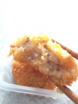 テーブルマークファンサイトファンサイト参加中モニプラさんの【テーブルマーク】2014秋の新商品お試しランキングに当選しましたやったー今回届いた商品は、テーブルマークさんの ①汁なし担担麺 ②下町定食屋の五目ごはん ③プチパン ④シナモンロール ⑤サクうまっ!牛肉コロッケ ⑥ごっつ旨いお好み焼き豚玉を1パックずつ食べ比べて自分の好きな順にランキングするという企画ついに最後の1品、サクうまっ!牛肉コロッケを食べてみまーす表のパッケージはこちら自然解凍でOKなんて、お弁当には持って来いだよね裏面パッケージはこちら↓ ↓ ↓中身を取り出してみますと…凍ったコロッケが入ってます(そりゃそーだ)今回はお弁当じゃないので、レンジへGO2コなので、600wで40秒でーす温めると、おいしそうな色味に変身凍ってる時は白っぽいからねさあ、実食割ってみた断面は、じゃがいものほっくり感が見てとれます挽き肉も沢山入ってるサクッとと軽やかな食感味は濃い目なので、ご飯がススムー挽き肉の味もしっかりありましたおいすぃお弁当のおかずにぴったりですよ何てったって、自然解凍でOKだから入れるだけで調理しなくていいんだもんね自分は、フツーにごはんのおかずの1品として食べたけどね白飯が進む進むごちそうさまでしたテーブルマークさん、ありがとうございました 続きを見る ['close']