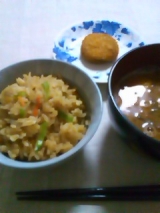 テーブルマークさんの冷凍食品 下町定食屋の五目ごはん頂いてみました袋から平たいお皿に移してラップをかけ電子レンジへ和風なのでお茶碗に入れてみましたすごい和風の香りと味です味 続きを見る