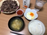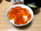 夜:牛肉、イクラ、温泉卵、お味噌、ご飯