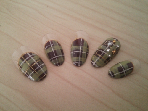 ボルドーとカーキは自分の手持ちのジェルをミキシングして作成