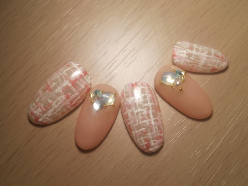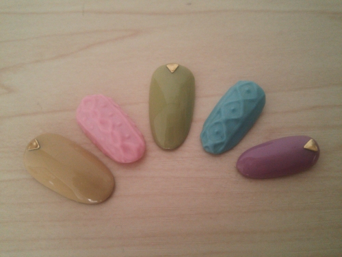 ベージュ、カーキは自分の手持ちのジェルをミキシング、ピンク、ブルー、パープルは少しグレーを足してスモーキーにしてみました♡