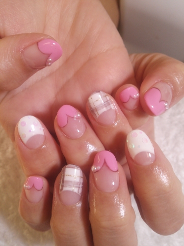 ピンクのハートと、ブラウンの組み合わせが相性バツグン バレンタインのような甘口ネイルになりました♡