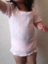 シャルレさんのインナーシャツとショーツです淡いパステルピンクに襟元のリボン、チューリップ柄がとってもかわいいんです(っ´ω`c)♥シャルレの下着は着心地と機能性、デザインに加えて、素材のやさしさ、そして丈夫さでも高い評価を得ているのだそうですシャルレには、そんな女性用下着の技術を活かした、こんな子供用の下着もあるんですね!娘は今2歳で100cmでこんな感じ♪ピッタリかな?とも思ったのですが、体のラインに合うような素材なだけで、とても伸縮性に優れている柔らかい素材なので、まだまだ着れそうですなので服を着たときにゴワゴワせずにスルッと着れます広めの襟元でトップスも合わせやすく、襟元のリボンがかわいいです♪袖のレースや裾のフリルもとってもかわいい♡♡薄い優しい素材なので、蒸れの心配もなさそうですが、裾が長いのでお腹が出る心配もそうそうありません!抱きかかえたりですぐシャツが出てしまうので、これは本当にありがたい!本人も気に入ってポーズとってくれます(笑)袖の縫い方が普通のシャツと違い、肩からずれて背中に向かっていますね!女性って服やシャツやキャミソール、ブラなど、全部肩に集中しますよね肩がしっかりしてる私にとっては、縫い目なが重なって、余計ムキムキに見えてしまうのが嫌だったので、シャツでもこんな袖の縫い方があるのかと感激しました!サラサラの優しい下着で、一日中着てもサラサラで、お腹も一度も出ずにとても快適でした!これけら汗もかく季節になり、下着を着せるのも暑そうで悩みますが、これはオススメです(`ω´)美と健康のシャルレファンサイト参加中 続きを見る
