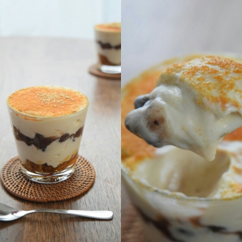 ティラミスは大好きなのでカフェのメニューにあると、必ず頼むほど好きなのですが、まさかこんなに簡単に作れるとは知りませんでした! 今回は、きな粉と黒蜜とあんこで、和風のティラミスを作ってみました あずきとマスカルポーネが意外とよく合います♪