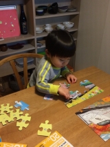 たんぽぽ広場にあった、くもんのステップアップパズルとても集中して遊んでいたので、STEP2のしんかんせんシリーズのものを購入してみたところ…1週間もたたずに、9、12、16ピースは、一人でできるようになっていました!20ピースも頑張ればできそうなきがしますが、さすがにその頃には、集中力も切れるようw難しそうですが、絵を逆さまにして作るほうが得なようですwもう少ししたら、STEP3も購入してみたいなぁ…これはおすすめです!私も小さいころパズルが好きだったのですが、パパも好きだったようで、自分もパズルを買おうかなぁとただ、作りかけのパズルは確実に壊されますが…(>