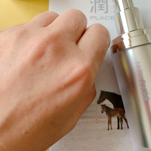 北海道の馬から生まれるプラセンタ 手の甲に美容液 を出した所を 写真に撮ろうと思ったのですが… ボタンを押すまでに流れてしまうくらいの サラサラなテクスチャー 続きを見る