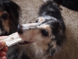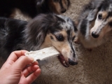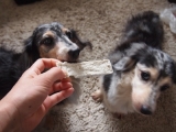 今朝の横浜は/先週の週末は土日ともによく晴れましたねなんでも土日ともにに晴れって2ヶ月ぶりらしいですそんな良く晴れた土曜日トレジャーズちゃんは大好きな海へ行って来ました!きっと今年最後の海だと思われます来週は法事で新潟へ行くので海は無理だしその次の土曜だと海へ入ると寒いだろうしでやっぱ最後だったよねトレジャーズちゃんも思い残すコトなく今年も海を満喫できたかな?来年はティナは16歳どうなんだろう??まだまだ海で泳げるといいなちなみにnaoは風邪ひいていたけどトレジャーズちゃんを海へ連れてってあげたくて無理したら昨日、今日とめっちゃ具合悪ぅつつらい本日のタイトルシニアだけどパピーガムのモニターをしたYO彡先日我が家にまたまた荷物が届きましたちょっとお久しぶりなトレジャーズちゃんのモニターのお仕事です今回はパピーガム ソフト スティック ミルク味 生後3ヶ月目以降のワンコから与えられるおやつカルシウムを強化して腸内環境を整え免疫力の改善であるオリゴ糖を配合して作っているそうです安心の国産無着色で甘いミルク味子犬から大人のワンコまでOKなガムデンタルケアやストレス解消に役立つんですってミルクガム大好きなトレジャーズちゃんパピーから大人までOKというコトでしたのでシニアなトレジャーズちゃんでも食べれる所をご紹介しようと思い今回応募してみたのまずは原材料を確認して牛皮、保存料(ソルビン酸K)、PG、炭酸カルシウム、膨張剤(重炭酸Na)、加工でん粉(トウモロコシ、タピオカ)、ビタミンE、オリゴ糖、グリセリン、脱脂粉乳、ミルクフレーバーうん良いのか悪いのかはよく分かんないやまぁ国産で無添加なら間違いないでしょぉ←かなりいい加減という訳でトレジャーズちゃんいよいよ実食と思ったけどガムの大きさは約だけど縦2cm 横9cm 厚さ5mmくらい匂いはnaoにはあまりミルクの香りはしなくって美味しそうなニオイとはとても言えないかなでもトレジャーズちゃんは封を開けた瞬間からこんなだからワンコには良い香りなのかも知れませんねではお待たせ致しましたトレジャーズちゃん召しあがれチャイチャイチュピちゃんティナ子さんトレジャーズちゃんは大好きみたいあっという間に1枚ずつ完食!食べたあとにいつまでもいつまでもチュピちゃんがお口をクチャクチャとしていたからお口の中に指入れて歯をなぞってみましたそしたら奥歯の歯と歯茎に引っ付いてた取ってあげたらもうクチャクチャはしなくなったので歯磨き効果という謳い文句はなしかなと思ったけどストレス解消にはなると思いますとにかく美味しいみたいで食べ終わってももっと食べたい!って言ってましたトレジャーズちゃんが大好きなパピーガムスーパーシニアなワンコも食べれますYO!15歳のティナが1番お気に入りみたいでしたあまり固いガムを食べれなくなったシニアなワンコにもピッタリ程よい固さですパピーガムソフト スティック ミルク味 が気になる方はコチラとコチラコジマ通信販売ファンコミュニティファンサイト参加中最後にコジマの皆様今回はトレジャーズちゃんをモニターに選んで頂きありがとうございました固すぎず柔らかすぎずパピーガムはシニアなワンコにもピッタリンコですねお味もワンコが喜ぶお味の様ですトレジャーズちゃんの大好きなオヤツの品目に入れておきますこれからも良い商品の製造販売を期待していますありがとうございました※コメント欄はクローズ致します 続きを見る