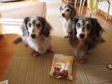 今朝の横浜はまずは残念なお知らせです横浜で大人気のドッグランのあるグリルレストランレディ&デュークが昨年末に閉店してしまっていました我が家は土曜日のぎりランチタイムに間に合うくらいに行っていていつも混んでいたので閉店していたなんてびっくりです貴重なワンコ店内OKなレストランがまた1つなくなってしまいましたお料理も美味しいしリゾートのレストランみたいな店内はとってもステキだったのにね本日のタイトルホームメード焼きささみライスジャーキーの モニターをしたYO彡先日、我が家にまたまた荷物が届きましたトレジャーズちゃん今年初のモニターのお仕事ですYO!段ボール見ると集まって来るトレジャーズちゃん何かヒソヒソ話しているみたい今回のモニターはペットの専門店コジマさんが販売しているホームメイドシリーズ焼ささみライスジャーキーです国産小麦粉不使用の米粉を使用したおやつなので小麦のアレルギーを持ったわんちゃんにも食べられちゃうオヤツ種類は乳酸菌入りとチーズ入りと野菜入りの3種類好きなのを選べたのでトレジャーズちゃんはチーズ入りをチョイスちなみに原材料は鶏肉ササミ、七面鳥肉、コーンスターチ、米粉、チーズ、脱脂粉乳、魚コラーゲングリセリン、甘味料(ソルビット)、PH調整剤、保存料(ソルビン酸カリウム)、酸化防止剤(エリソルビン酸)、発色剤(硝精)、グルコサミン、コンドロイチンコラーゲンやグルコサミンコンドロイチンが入っているなんてシニアのワンコにもぴったりだねなどとパッケージを熟読していると待ちきれないトレジャーズちゃんは早く食べたいアピールあげるから待っててジャーキーといっても見た目はクッキーみたいだけど感触はクッキーみたいにサクサクしていないしパリパリでもないどちらかというと濡れセンベイみたいな感じって言ったら分かりやすいかな形はワンコ好きにはたまらない骨型と食べやすい丸型の2型入ってます最初の味見は丸型でねこれがすっごく興奮しちゃってお写真まともに撮れないほどなのピント合わせようと何度も試みたけどトレジャーズちゃん飛びついて来てnaoの指を何度かじられたコトかココまで興奮するのは珍しいマジnaoの指が心配なのでブツ撮りはこの辺で諦めていざ実食!チャイチャイティナ子さんチュピちゃんダメだ興奮しすぎて全てブレブレコジマさん、こんなお写真ばかりでごめんなさいトレジャーズちゃんこの焼きささみライスジャーキーめっちゃ好きみたいですしかも噛まずに飲み込んでる??すごい速さで胃袋へと消えて行きましたそんなに美味しいなら良かったねこれもモニターに選んでくださったコジマさんに感謝だよんそうそうコチラの焼きささみライスジャーキーの香りはほのかに香ばしい香りがする程度花粉症だから?でもトレジャーズちゃんにとってはうまうまな香りがするのかな?とにかく封を開けた瞬間から大興奮でしたそんなトレジャーズちゃんを虜にしたホームメイドシリーズ焼ささみライスジャーキーが気になる方はコチラコジマ通信販売ファンコミュニティファンサイト参加中トレジャーズちゃんも今度はコジマさんの本牧店で購入しよ!っと最後にペットの専門店コジマの皆様今回はトレジャーズちゃんをモニターに選んで頂きありがとうございました焼きささみライスジャーキーとっても好きみたいです今度本牧店でも販売されているか探してみます今後もワンコにとってより良い商品を製造および販売してくださいね今後とも宜しくお願い致します※コメント欄はクローズ致します 続きを見る