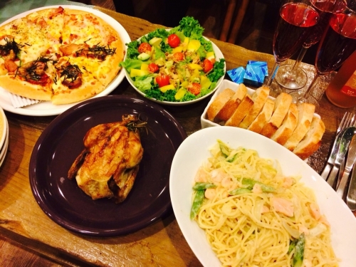 パスタは豆乳明太クリームパスタ♪ シャンパンと共に