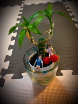 かばんに常にいたふちこは 今ここに いまーす100均で買ったバンブーは、一度枯れましたが蘇りました(^^)(^^)
