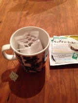 いただきました♪オアシス珈琲有限会社さんの「きれいなコーヒー カップインコーヒー」きれいなって何が綺麗なのかな?と思ったら、コーヒー豆を綺麗に洗浄してあるそう初めて聞きました!が、どうなのかな味は薄くないのかな バッグタイプなので、タンブラーにつけて通勤時に!浸けっぱなしでデスクに置いても!忙しい方にも急なお客様にも!お湯を注いで上下に振り、3分間浸すだけ(タンブラーなら浸けっぱなしでOK)でドリップのひとつ上の味わいが手軽にお楽しみいただけますほー!なんだか簡単そう!!開けるとこんな感じおーぉ斬新♪ お湯を網目に入れて、しばらく待つ 肝心なお味ですが、すっきりした飲みやすい感じです漬け置く時間で濃くもなるようなので、好みに合わせて&その時の気分に合わせて時間を変えるといいですね!!普段から割と濃いめを飲むので、次回はもうちょっと時間をおいてみたいと思いますしかしむすめから、飲み過ぎ注意報発令中(笑)カフェインレス(★★★)もあるみたいなので、2杯目はそちらを飲むといいですよね 「きれいなコーヒー」オアシス珈琲ファンサイト参加中 続きを見る