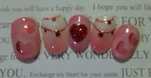 ピンクのハート♡とレッドのハート♡でいっぱいのぷるぷるハートネイルです