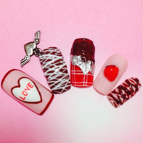 普段はなかなか言葉にできない想いを、ネイルを通して気になる彼に伝えたい♡ ネイルは味方!気になる彼に勇気を出して告白したい♡ そんな可愛い女の子の恋愛を応援できるデザインを心がけました!