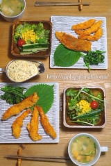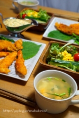 こんばんはヾ(@⌒ー⌒@)ノ 今日も一日お疲れ様でした 今日はまだ月曜日だと言うのにボケボケのひこまる(いつもか…(^◇^;)) 朝から鍵が行方不明…あっ、見つかりましたいつまでたっても、おっちょこちょいは治りません 気を取り直して、今日もご飯のご報告 休日の晩御飯 お昼ご飯が遅かったりするので、あんまりお腹も空いてないなぁっと言いながらお散歩がてらお買い物へ… あれあれ?さっきまで、お腹空いてないって言ってた我が家のもう一人の食いしん坊の相方くん海老フライが食べたいと言うではないですか 海老フライが食べたいのか、タルタルソースが食べたいのかは、微妙ですが、ご飯は1日のプチ幸せっということで、リクエストにお答えすることにしました 時間もそこそこ遅かったので、サッサとお料理はじめましょう そうそう、そんな食いしん坊2人の我が家に、また素敵なプレゼントが届いたんです先日の手巻き寿司パーティで、美味しい焼海苔を届けて下さった野菜王国さん実はダブルで当選させて頂いたんです重ね重ねありがとうございます 化学調味料保存料不使用の安全安心のお出汁普通のお出汁にプラスされた白菜の旨味たっぷりの出汁パック… なかなか日中家に居ないと、お出汁を1から摂るのは大変です 早速、お試しです 濃い目のお出汁は400mlのお水または、お湯に1パック倍量だと薄目のお出汁が摂れます一口飲んでみると、味もしっかりついているので、追加の調味料不要これははじめてです 豆腐、玉子、葱を入れてお吸い物にしました お次は、タルタルソース作りです タルタルソースってやっぱり手作りが一番ですよねヾ(@⌒ー⌒@)ノ 出し殻がパックに残ったので、タルタルソースに入れることにしました素材は全て安全な食材なので、安心して使えます 混ぜたところに具材を加えます 玉ねぎ、ピクルス、ディル 今回は見切り品で売っていたディルをパセリの代わりに入れましたディルは刻んでる間から美味しい香りが広がります 軽く塩コショウしたら、マヨネーズを入れて、タルタルソースは完成です 昔から私も海老フライが大好きで、タルタルソースが大好きなんです 美味しい物を目の前にしたら、作る苦労なてあっという間に飛んでいきます 下ごしらえもはじめました 海老はお腹側に切り目を入れて海老を伸ばしたら、背中が曲がらず綺麗にまっすぐ揚がりますもんね 最近はバッター液という小麦粉と玉子と冷水を混ぜた物にくぐらせてパン粉をつけて揚げることが多いです串カツ屋さんでもこの方法を使っていて、手順が一つ減るので時短にもなるし、海老も大きく仕上がります塩コショウで下味をつけて… 最近はフライパンで少ない油で揚げています 真っ直ぐ揚がってます いよいよ食卓へ… 海老もサーモンも綺麗に揚がりました 見切り品の菜の花も素揚げしました程よい苦味と甘みが幸せ タルタルソースもたっぷり… 海老にもタルタルソースをたっぷりプリップリ… サーモンも皮がカラリと揚がって、美味しいヾ(@⌒ー⌒@)ノディルの香りが最高 サラダには、手巻き寿司の時の残りの野菜もたっぷり相方くんはタルタルソースでお野菜も…私はにんにく酢をかけてサッパリと…にんにく酢は、そのままでも立派な調味料です 玉子で少し濁りましたが、何にも味付けしてないお出汁美味しいです完成品にしっかりなってるこちらのお出汁は忙しい日の味方甘みは白菜なんですもんね健康的です とっても美味しかったですあと一袋どうしようかな 美味しく楽しく晩御飯会話も膨らみます 今宵もご馳走様でした 今日も最後までお付き合いありがとうございましたm(_ _)m 今週も雨の多いで一週間になりそうですね雨だと荷物も増えるし、出かけるのも億劫になります視野も狭くなりがちなので、お出かけの際は気をつけてお出かけ下さい 今日も心からの感謝を込めて… 九州野菜王国ファンサイト参加中 MAHALO NUI 続きを見る