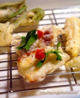 こんにちは(⌒▽⌒) 今日もご訪問ありがとうございます いいお天気になりましたね あいにく、こんなお天気の日に相方くんはお仕事ですが… 頑張れp(^_^)q っとここから、エールを送っておきますどうやら、ご近所の若いお友達と仕事の場所で偶然会った模様…世間は狭いですね(^◇^;) さて、昨日は上の弟くんのお誕生日ということで、のっかり企画… 我が家でもお誕生日会を開催しました 理由は何でもいいんですお祝いは、少しでも賑やかに… っというわけで、我が家では天ぷらパーティに致しました週末お仕事の相方くんにも、しっかりエネルギーを補給してもらわないと こちら、時々登場するダイソーで大昔買ったお皿600円位!? 色んな使い方が出来てお気に入りです 今回は 抹茶塩 カレー塩 梅肉 ブラックペッパー ポン酢 まるっと柚子(柚子果汁) 抹茶やカレーは、直前に塩と混ぜましたなので、香りがいいんです 食材もたっぷり種類沢山用意しました 頼まれもしないけど、もう少し寄ってみます 見切り品コーナーから救出した物や、冷蔵庫の残り物も盛りだくさん 卓上IHを用意して、ルクルーゼにサラダ油とごま油を入れて… このルクルーゼは昔職場のお友達が皆でプレゼントしてくれた宝物白はどこに出しても馴染みます 天つゆも、用意しました これ、前回は手巻き寿司にさせて頂いた焼海苔前回の記事手巻き寿司パーティ この時も美味しく頂いた焼海苔を今回も用意しました 海苔の上に長いもをおろした物をのせて、揚げていきます 揚げてる間から、香ばしい香りが漂います綺麗な油で海苔の美味しさを味わいたかったので、一番目に… 長いもの磯辺揚げ カリカリっと揚がった海苔はしっかりした韓国海苔風に揚がり、フワフワの長いもと相性抜群天つゆで頂いても塩で頂いても美味しかったです変色しない様にほんの少しだけレモン汁か酢を入れると綺麗な色でテーブルに出せます 本格的に天ぷらのスタート 海老の青紫蘇巻き 長いもの磯辺揚げ2 海老が大好きなひこまる青紫蘇の香りをまとって、更に美味しく… 磯辺揚げは、こちらは長いものそのままの食感を活かして海苔を巻きました これもちょっとの海苔が凄く効いています お次は ふきのとう ウインナー 火が通りやすい物から空いたお腹を満たしていきます ゴボウの生ハム巻き 細く切ったゴボウを束にして、生ハムを巻きました手巻き寿司の時の生ハムが冷蔵庫に残ってたので使いました 生ハムの塩気とゴボウの香りがいいコンビ 舞茸 キノコの中でも香りが強いので、天ぷらに最高ですね こごみ ふきのとうと、こごみは、見切り品コーナーで91円で売っていたので、本当は鮮度が大事な山菜ですが、少しエグミはあったけど、香りを味わう天ぷら美味しいです あっ、繋がってる(笑)仲良しね ヤングコーン 美味しい(⌒▽⌒) ちくわの梅肉&パクチーのせ 梅肉は梅干しの果肉の部分をたたいて作りました 和のイメージとは合わない様ですが、パクチー好きな方は試してみて下さいね(^_-)- 豚トマト小籠包のレシピ 豚にんにく 豚トマト小籠包 豚肉で巻くと旨味が閉じ込められて美味しいんですよね 豚トマト小籠包は以前に紹介させて頂いたレシピです豚トマト小籠包のレシピ 前回はBBQでご紹介しましが、揚げても美味しいんです ドカーンっと大迫力なこちらは… 穴子の天ぷら こちら、2日連続の穴子です また、半額で一匹100円だったので思わず買っちゃいました丸ごと揚げるとダイナミック ミョウガ あっさりした香り天ぷら 今回は香りいっぱい包まれる天ぷらが盛りだくさんでした もう、お腹いっぱい(^◇^;) 太るぞ太るぞ… 太ってるぞ そうそう、先日、あまりに焼海苔が美味しくて、父の事情を話して、特別に早く送って貰ってた海苔が弟くんの家にも届いた様なんですあまりご飯は食べれなかった父ですが嬉しそうに海苔にお刺身を包んで嬉しそうに食べていたそうです 早く送って頂いて感謝しかありません 実は写真が届きました実は今、父だけでなく、お義母さん、義妹さん奥さんの家族まで、家に泊まりに来ていたんです あれこれ事情があり、集まった賑やかなお誕生日会自分のお誕生日にこんなに家族に囲まれるって人生でたった一度かもしれない 海苔にかぶりつく奥さんの写真も送ってくれました父も満足そうです なぜタンクトップ?みたいな疑問は別にして(笑)(自分でご飯を全て用意したので、たまたまそんな姿だっただけという言い訳がありました) 海苔がとっても美味しかったという話でした良かった父の好きな物をまた一つ食べさせてあげられました しかもこんなに大勢でお誕生日のお祝いの席に参加出来た様な気持ちになって、とても嬉しかったです野菜王国さん、ありがとうございましたm(_ _)m \焼きたて/熊本有明海産一番摘み焼海苔 本当に美味しい海苔次は下の弟くんの家に送りたいと思います 今日はどんな週末をお過ごしですか 穏やかな気候と新芽が息吹いてきた季節を味わえる素敵な午後になります様に… 今日も心か