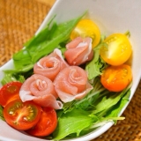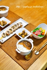 こんにちはヽ(⌒▽⌒)ノ 肌寒いですが、また少しずつお天気が戻ってきてるみたいで、連日の雨のつかの間の休憩は何だかホッとします さて、今日もおうちごはん 今日はまだ残っています美味しい焼海苔野菜王国さんの商品美味しくて、大事に頂いてます 鶏ロールを作ってみましたいきなりお湯に入れると鶏ハムのイメージがありますが、今回は焼き目をつけたので鶏ロールにしておきます 印刷する メールする しっとりジューシー鶏明太海苔ロール [ジャンル] 和食 [難易度] ★★ [調理時間] 60分 [[ 材料と分量 ]]1本分 鶏むね肉 1枚 明太子 1本(1/2腹) 焼き海苔 1枚 塩胡椒 少々 たこ糸 20cm位 日本酒 大さじ1杯 [[ 手順 ]] 下準備 作り方 1 ) 鶏肉を広げ、ラップをして、麺棒で叩いて転がしながら伸ばしていき、ラップを剥がし、鶏肉の上に焼き海苔明太子を広げながらのせる(具材になる明太子はなるべく手前におく) 2 ) 手前からきつめにクルリと巻いていくたこ糸を縦横にくるりと巻いて鶏肉をしばる(鶏肉のロールが成形される為なのでそんなに神経質にならなくてもきっちり巻けていればOK)表面に塩胡椒をしておく 3 ) つなぎ目を下にして焼いていく少し焼き目がついたら裏返して表面全体に焼き目がつく様に焼き、日本酒を入れて少し蒸し焼きにするこのまま水を入れて焼いてもいいが、今回は保温鍋を使用する為取り出す 4 ) 保温鍋(シャトルシェフ使用)にお湯を沸騰させておき、3で焼いた鶏肉はラップに2重にしっかり巻いて鍋の中に入れて保温調理最低30分以上(保温鍋がない場合は炊飯器にお湯をはり、同じく30分程おく 5 ) お湯から取り出したら、ラップをはずし、糸を切ってはずしていき、お好みの薄さにカットすれば完成(パン切り用の包丁が使いやすい) 6 ) お皿に盛り付ければ完成ベビーリーフなどをちりばめたり、敷いたら彩りももっと良くなる 美味しい焼き海苔が手に入ったので作ってみましたあれば三度豆やスナップえんどうなどを入れて一緒にロールすると更に綺麗な色になります海苔の代わりに青紫蘇を使用するのもお勧めです あまり考えもせず作り出したので、後で思えば、もう少し緑のお野菜も巻いて作れば良かったなっとか思いましたもし作りたいなって思われたら是非、三度豆やスナップえんどうや、菜の花など、一緒に入れて作ってみて下さいね(^_-)- しかし、美味しい海苔だと、まるで海苔が調味料みたいで、本当に幸せ 他は楽チンメニューですカレーが大好きな相方くん執念で頂いてきたカレーを頂きました ごはんとカレーの境目にフライドオニオンをトッピング美味しかったです優しくて丁寧でまろやかで… 発電に活かせないだろうか、このカレーへの情熱って思っていましたが、こうやって美味しいカレーを食べられたので、たまには役に立つと言うことで ホワイトマッシュルームが特価で美味しそうだったのでフライパンにオリーブオイルにニンニクのみじん切り、パン粉を入れて、塩コショウをして、マッシュルームを入れて仕上げにパセリを加えただけの簡単メニューですが、パン粉焼きみたいに香ばしく仕上がるので、なかなかお酒のおつまみにも最適です 後は、サラダだけ…この春は雨が多く日照時間が短いらしく野菜が高騰そんな時にはやはり、急げ!見切り品コーナー(って年中見切り品コーナー行ってるくせに) いいスーパーだと、まだまだ美味しく食べられる野菜が値下がりするのも早い 今回は水菜をGET生春巻きにしようかと思ってたけど、面倒になって、結局ただのサラダになりましたが、ここはない頭を使って、少しだけ見映えをよくしましょ 生ハムを三つ折り位にしてクルクルっと巻いただけで、少しお花畑のイメージにこのカラフルトマトも見切り品コーナーで1パック138円通常300円400円とかしちゃうので、飛びついちゃいました 何か、スーパーでは知り合いに会いたくないですね ドレッシングは簡単 にんにく酢+薄口醤油+お好みの油(今回はごま油使用) 市販のドレッシングより、やっぱりにんにく酢を使ったドレッシングが私は大好きです鍋やフライパンに入れて火にかければかなり酸味も飛びますし、温めても冷やしても万能調味料そろそろ、この前漬けたにんにく酢も漬かってくる頃でしょうか…手間はあまり変わらないので、量は多めに作られた方が楽チンです今のところ常温で1年位おいても熟成して逆に美味しくなる位で腐ったりしていないので、無添加だし、安心安全にんにくが安い時に、是非作ってみて下さいね(^_-)- 最近夜ご飯、食べるまではお腹空いてるのに、いざ食べ出したら、すぐお腹いっぱいになって、何だか夜は少食翌朝、お弁当へと残り物が流れますその割りに痩せないのはなぜ??? きっとお酒は別腹だから(笑) ダメだこりゃ 今日はちょこっと、美容院へ… 相方くんもいないので、仕事終わったらダッシュ… なんかね、前回のカットもパーマも気に入らなくて…ずっと、ため息の鏡の前のひこま 前髪短くしても似合いますって言われて調子