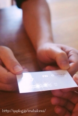 おはようございますm(_)mっと書いていたら、すっかりお昼こんにちは 一週間お疲れ様でした 皆さん週末はいかがお過ごしですか? ちょっと抜け殻の様なひこまるですが、何とか無事に父を見送る事が出来ました 見守ってて下さった皆さん、ありがとうございましたm(_ _)m 綺麗な桜を見られるのも今日が最後かな? 連日の雨で桜も散ってきましたね 皆さんはもう、桜はご覧になられましたか?私はまだ、ゆっくり桜鑑賞も出来ていないので、ご近所ででも、少しは見られるかな? 4月新しい季節の始まり… そんなスタートに相応しい物 新社会人の皆さんも初めて手にするのではないでしょうか? 何だか分かりますか? 私のブログアドレスの入った名刺 その名もkirakiraカード 実は私の仕事って、社内にいる事務職中心だった為、社会人生活は長かったものの、名刺という物を手にしたことがありませんでした 前々から、ブログのアドレスを聞かれたり、食べに行ったお店の事を書く時も、「写真を撮っていいですか?」『ブログに載せさせて頂いてもいいですか?』って会話になることも少なくなく、時々、ブログ名を聞かれたりするんですが、割と覚えにくい名前でしょ!?MAHALO NUIって… そんな時、さらりとお財布から、名刺みたいなカードが出せたらなって、半ば妄想でしかなかったんですけど、そんな夢を見ながらも、行動に移す事もなく、ブログそのものを書き出して、9年は経ちますが、一度も手にすることなく、過ぎていきました 今回、そんな私の夢を叶えてくれる企画が目の前に… そんな簡単に叶うとも思わず応募したら、 なんと、当選したんです その名もkirakiraカード 女の子受けしそうな、キラキラ光るカード オーダーも普通の方が注文するのと同じ様に体験しましたkirakiraカード こちらのネットで簡単に作ることが出来ました こんな感じの画面で、カードの台紙を3種類から選んで、マークを選んで、字の色を選びます字体は明朝体、ゴシック体、楷書体の3種類から選びます 通常の名刺と同じ様に、肩書きや、名前、アルファベット表記などが出来ます 今回私はブログ様のカードと明確な使い方が決まっていたので、ブログ名、ハンドルネーム、ブログアドレスそこにメールを付け加えました 私が当たったのは50枚ですが、通常、100枚で税抜き価格3980円 必要な情報を入力して次の画面に行くと こんな風にイメージ画像が出てきて、仕上がりイメージを確認出来ますパソコンの方が見やすいけど、かなり分かり易いオーダー画面でした kirakiraカードなんだから、当たり前なんだけど、キラキラなイメージのブログでもなかったので、ちょっとドキドキドキドキしながら、到着を待ちました 小分けした袋に入っているのもありがたいですね 届いて中を開けるとき、初めての私のブログ名刺と思うとドキドキ… 白にシルバーカードはコーティングされていて、普通の名刺より、ツルツルして綺麗シルバーの色も自然な感じで、スッキリした雰囲気に仕上がりました TOPの写真は私の原点でもあるにんにく酢 ないないって言い続けながらも、本当に今年に入ってから、バタバタで、全然作れて無かったんだけど、下の弟の奥さんが欲しいって言ったので、お世話になってるから、これは何が何でも作らなきゃっと、気合いを入れて体力に仕込みっていっても、ニンニクを剥く以外は、フードプロセッサーでみじん切り作業してるし、たいしたことはないんですけどねついつい億劫になっちゃうめんどくさがり屋の私… なんてったって、4リットルの瓶も作ってますから(笑)他にもジンジャービネガーや、ゆず酢とか、色々作っていますが圧倒的ににんにく酢の消費が激しいんです一ヶ月経つと、まろやかになって、お酢のツンとした匂いもなくなります是非作ってみてくださいにんにく酢 そして作ったので、私のブログの代名詞となるにんにく酢と名刺をかけて記念撮影(笑) そして、一番目にはやはり、お世話になってる相方くんに… そして、なにより、東京に旅立つ父に、渡すことも出来ました ブログとか見ないのにね(笑) 意外と嬉しそうに受け取ってくれてたのが印象的でした 相方くんと一緒にkirakiraカードを手にポーズまで… 初めて手にする自分の名刺自己満足でもちょっとしたプチ贅沢におもしろいブログをやっているお友達へのプレゼントにもいいかもしれませんね 今回お試しさせて頂いて 良かった点 とても上品に仕上がった オーダーが簡単に出来た イメージが見られて実物がその通りだった もっとこうだといいなって思ったこと 背景の種類や字体、スタンプ、字の色の種類がもっと選択肢が多いと嬉しい 枚数が半分位でもお安く購入出来ると嬉しい 写真とかを入れられるとカスタマイズの感覚が広がる 今回の私みたいな使い方をしたいなって思われる方も少なくないかな?っとも思いますが、もっとデザインが豊富だと、オリジナル度がアップして楽しいなって思いましたツルツルだったり、マットな仕上がりだった