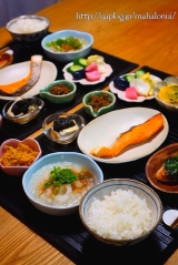 こんにちは(⌒▽⌒) 今日はあいにくの雨 どうか、もう少し桜を楽しませて下さい皆の願いが届きます様に… さあ、今日も感謝を込めたおうちごはん お気付きの方もいらっしゃるかと思いますが、私のブログ名MAHALO NUIの名前にサブタイトルがプラスされました っと、大騒ぎする様な知名度もない、個人のささやかなブログですが、ブログ名だけ見ても、なんのブログか分からないって言われる事も少なくなく…私自身は、外食も書くし、お出かけも書くので、一つに的を絞っても…っと考えていたんですが、まあ、基本おうちごはんが多いので、少し分かりやすくしてみようと、変更してみましたでも、知識が少ないからか、サブタイトルにしたいのに文字の大きさが同じという(^◇^;)まっ、中身は相変わらずなので、引き続き温かく見守ってくだされば嬉しいです 今日は、THE和食この日はちょっとお疲れ気味で、手の込んだお料理がしんどかったので、簡単メニューを並べてみました 数を並べれば、それなりに豪勢に見える 私的には、理想の朝食を夜に食べたイメージ 和食にするきっかけがありまして、実は度々で恐縮なんですが、また、美味しいプレゼントが当選ありがたいことです 今回はこのお出汁 到着した時にどうやら、撮影を忘れたらしく、お借りした画像です 元ホテルオークラの料理長が監修して出来たお出汁だそうで、思わず応募しました 当選品は僅か15gのサイズなので一回使い切りサイズ色々試したかったのですが、この量だと、シンプルに頂くのが一番 中身は粒子の細かい粉になっています 届いた時に、「まずは、そのままお湯に溶いてお召し上がり下さい」っという様な文明を見たので、そのまま5gはお出汁そのまま味わいました お茶みたいですがお出汁です 黄金色の透き通ったお出汁先ずは一口とても上品なお出汁です とてもナチュラルな自然素材のまろやかなお出汁余計な物が入っていないので、雑味もありません 200ccのお湯に対して10g細かい粒子だし、全て溶けてしまうので、きっと、肉団子に入れても玉子焼きに入れても美味しく頂けそうですね 豆腐と葱のすまし汁 少しだけ塩を加えて、豆腐とお葱だけ入れてシンプルにすまし汁にしました 本当にお出汁を1からとった一番出汁の様な優しい味です雑味がないのが、このお出汁の特徴の様に感じました素材そのままに味わえる、溶かすだけで美味しいお出汁が味わえるのは、忙しい現代の生活にはありがたい物だと感じました さん、ありがとうございましたm(_ _)m そんなすまし汁に合うメニュー 焼き鮭 やっぱり焼き鮭ご飯のお供には、やはり定番のこちらが… 食欲をそそります 笹かまぼこの青紫蘇巻き 久々に笹かまぼこを見つけたので、買ってみました4本98円野菜室で、萎びていた大葉を巻いて、フライパンで焼きました私個人的な意見ですが、かまぼこや、竹輪は火を通した方が美味しい 少しだけ油を入れて焼いたのですが、香りが広がりプクッと膨らんで、甘みが増してきます巻いた大葉が合いますほんのひと手間ですが、出来たてを頂いてるみたいで幸せ… 黒豆納豆 大好きな黒豆納豆は、玉子とお葱を入れて栄養たっぷり お漬物アソート お漬物は、セットになって小分けしている物を買いました少しずつが嬉しい いかなごの釘煮 手作りの物は、本当にありがたく、日々の食欲に花を添えてくれます春の贅沢な一品 冷奴は少しずつ、ひこまるお手製の海苔の佃煮をのせて… 水を入れず、お酒だけで作るとやっぱり長持ちしますね(⌒▽⌒) 大根おろし 大根が美味しそうだったので、大根おろしにして頂きました汁には凄く栄養があるので、見た目はわるいけど、お汁もタップリそのまま入れています ぶりの子の煮付け 鯛の子は高いイメージがありますがぶりの子は、魚のアラ位のお値段で年に数回しかお目にかからないけど、まるまる大きいサイズでも198円見た目はとてもグロテスクです血管が太いので、そこに包丁を入れたり、薄皮を剥いたり、少しだけ下処理に手間がかかりますが、ここだけしっかりしておいたら、美味しく頂けます鯛の子と比べたら少しだけワイルドな野生感があるので、ほんの少しだけ濃いめの味付けにしましたとっても大好きです 白ご飯 やっぱり今日のメニューには、欠かせませんこの白ご飯は、父が引っ越す前に貰ったんですそれを相方くんが炊いてくれました水加減が絶妙で、ツヤツヤのお米はとても美味しかったです ご飯担当大臣を命じます(笑) 夜はなるべくご飯を食べない様にしているけど、これはご飯が進むメニュー ないと寂しいメニューでした 結局、ぶりの子の煮付け以外は常備菜だったり、シンプルだったので、楽チンメニューでしたが、なんか和食ってホッとしますね 東京に行った父思った以上に居心地が良さそうで、弟夫婦の気遣いのお陰だと感謝しています 普段は遠く離れているせいもあって、義妹と話す機会も少なかったですが、慣れない生活に疲れが出てないか、マメにメール