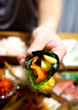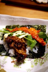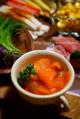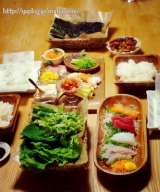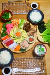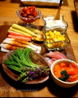 こんにちは( ´ ▽ ` )ノ 今日も花曇りまだまだ気温は低いので、少し防寒して出かけました ちょっと体が暖かさに慣れてしまったのか、ちょっと前までもっと寒かったのに、寒がりが戻ってきています さて、一人の夜が増えると、父と行った外食以外の画像がなくなってきましたよ さて、今日はちょっとご馳走です 記念日でも何でもないけど、手巻き寿司パーティ っというのも、待っていたプレゼントが届いたんです こちら焼海苔素材大好きな私が興味津々で応募して、見事当選したもの 九州野菜王国さんありがとうございます 一番摘みの海苔を使った って言われてもピンときませんが、一番摘みとは、11月12月に海苔の収穫は始まるそうで、その海苔は貴重品食感が柔らかく香りがいいという、『高級贈答用品』として出荷されているんだとか… そんなの聞いたら食いしん坊のひこまる 食べてみたいっとなりまして 最初に採れる海苔が一番等級が良くて、高級お寿司屋さんでも使われてるって、そわな海苔食べたことない是非食べてみたいっとなった訳です しかもね、焼いたその日に出荷してくれるとの事で、大げさかもしれませんが、この日を待ちわびていました 袋を開けた瞬間に何とも言えない匂い 実はね、この消費税と一般の商品を比べたくて、もうひとつスーパーで焼き海苔を買ってきたんです一般的に売られている手巻き寿司用の海苔 勝手に比べてるので、メーカー名もパッケージもお載せしませんが開けて並べたのがこれ もう、きっと目で見ただけでも違いも正解もお分かり頂けると思います上がスーパーで買った物下が届いた海苔 決して分厚くないのに、とってもしっかりしていて、しなやかなパリパリ感スーパーの物はハサミで切らないとなかなか切れないのに、一番摘み焼海苔は綺麗に折っただけでいい音をたてて、綺麗に4等分出来ましたそしたら、海苔の粉が落ちたはしたないけど、それを集めてお口に放り込む 何これ??? これ、大袈裟でもなんでもなくて、ほんのちょこっとの粉になった海苔が美味しくて美味しくて… 味でもつけているのかと、思わず袋の原材料名を二度見した位です そうよねそうよね 確か、私はこの何も入ってないシンプルな素材を気に入って応募した筈… 梅塩みたいな調味料がついてるのかと思う位、この一口目が感動でした この海苔が当選したら先ずは絶対やろうと思ってたのが、手巻き寿司パーティ(相変わらず、参加者2人ですが…) 日課になりつつある、父に電話をし、猛ダッシュで、食材の用意めちゃくちゃ疲れた日だったけど、美味しい物を目の前にすると疲れも吹っ飛んじゃいます 和のイメージの強い手巻き寿司いつもコーディネートがかぶりがち… こんなのや、 こんなの その時々の気分でやっていますが、 今回は、ちょっと変わった手巻き寿司 オードブル風にコーディネートしてみようっと閃き 用意したもの カッティングボード(ACTUS1500円) 木の長皿(ナチュラルキッチン500円) 木の四角皿(ナチュラルキッチン300円)×2 麻紐を巻いた様なカゴ(セリア100円)×2 友達に頂いた小皿(お気に入り) 正方形のフリルっぽい白皿(ナチュラルキッチン100円)×2 カッティングボード以外は、比較的手に入りやすいお値段の木のぬくもりを意識したコーディネートに決定 ワックスペーパーを白の取皿に敷きましたが、これ、東急ハンズさんで一目惚れちょっと普通のワックスペーパーに飽きてきたので、グリーンと茶色の木の組み合わせは新鮮しかも、これ、白黒の水玉とアソートにしてくれて販売されててポイントで買いましたとても可愛いので、良かったらハンズさんに行かれたらチェックしてみてください 今日、何のご飯?っとオードブルが並んでいる感じをめざしたのであ、手巻き寿司を連想しなかった相方くんその答えを待っていた お刺身4種盛 鯛、イカ、まぐろ、サーモン 2人だから少ないけどこれだけで我慢 これ、カッティングボードの上にあれこれおつまみみたいに盛り付けましたこの上に使ってる小鉢は1つ以外100円 ヤングコーン、かにかま、ちくわ キムチ ツナマヨ&コーン 芽ねぎ&穂じそ どっちも63円のお値打ち品GET嬉しい お値打ち品コーナー穴が空くほど見てます スモークサーモン これも180円迄下がっててGET 生ハム 少量パック 豚肉の旨辛焼肉風 にんにくと生姜と豆板醤をきかせました お野菜盛り合わせ チシャっ葉、えごまの葉、パクチー、胡瓜 巻き野菜や、挟み野菜もたっぷりと 先ずは、実食食べ比べ あまりネタを変えすぎると不公平になるので、こうやって並べてみました 実食食べ比べ委員会設立 ただ委員長は頼りない相方くんあいにく、花粉症で鼻が詰まって匂いが分からず残念なお人実食だっと言ってるのに、見た目から『こっちに決まってる』っと言ってくる確かに、おっしゃる通り、見た目から生き生きした海苔ですよですがお兄さん!それじゃ食べ比べの意味がないよっともう、委員会いきなり決裂ですなので、私自身で実食Time もう、何て