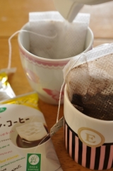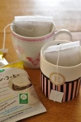 カップインコーヒーを試させていただきましたティーバッグ式なので、いつでもどこでも簡単に美味しいコーヒーが飲めちゃいますそして、この「きれいなコーヒー」ですが、何なんこのネーミングは?って初め思ったのですが、いやいやビックリですよコーヒー豆って輸入されて来た時はすんごい汚れてるんですってほこりや泥、脱穀時に着いた果肉やら農薬などの不純物が付いたままそれをジェット水流で洗ってから焙煎してるんですってなので「きれいなコーヒー」なのですよワタシ間違えました ^^;パッケージのように上部を広げてからお湯をかけないといけないのに初めはそのままお湯かけちゃってましたそれにちゃんと入れた時の写真撮ってないし ^^;お湯を入れるとバッグが浮いてくるので、出来れば縦長のマグとかで入れるのがいいみたいですお湯を入れたら紐をもって何回か上下にこの作業でコーヒーの濃さが変わりますそしてそのまま3分ほど置いておくのですが、冷めちゃうので小皿かなんか上に乗せるといいでしょー(笑)出来上がりましたー♪ …