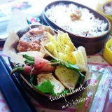 今日のお弁当は( ̄ω ̄)ノ相変わらず詰め方スランプ継続中( ̄∀ ̄)とくに曲げわっぱ2段は思った以上入るからいつも“想定外”??(笑)あれ??“予想外”だっけ??(笑)byむかぁしの白戸家の会話\(//∇//)\*お弁当menu*豚バラのゆかりシソ巻き自家製焼売ハムチーズ巻き煮物入りたまご焼きsumiちゃんの♡デリ風新じゃがマスタードマヨサラダデザートにキティちゃんのりんごゼリー\(//∇//)\ご飯は梅子ちょんにちりめん山椒と柚子胡椒のふりかけでヽ( ̄▽ ̄)ノ今日は珍しくお弁当作ってる時に側に母がいて『昨日さぁ』と仕事場での出来事を語っていたから余計詰め方が分けわからずこんなんなっちゃって…↑完全母のせいにする娘がここにぃ( ̄∀ ̄)なんて親不孝な娘なんざんしょ(´∇ノ`)♡豚バラのゆかりシソ巻き♡豚バラ肉を半分に切って端と端が重なるように合わせますゆかりをパラパラっとお好みの量かけて半分に切った青じそを置いて下からぎゅぅっと巻きます巻き終わったら全体に片栗粉をつけて巻き終わりを下にしてフライパンで焼きます油はひいちゃダメよぉダメダメ(´๑⊙⊙)<ダメヨ~ダメダメッ火が通ってシソのいい香りがしてきたら出来上がり(≧∇≦)bゆかりとシソでさっぱりと食べられる豚バラ巻きです♡♡sumiちゃんの♡デリ風新じゃがマスタードマヨサラダ♡昨日ペコリを見ていて思わず虜になったすみこレシピのアレンジです(´∀`)新じゃがいもはレンチんしてお弁当に入れやすい大きさに切りますすし酢小さじ1を回し入れ絡めておきますレンチんしたえんどう豆とカニカマを切って入れ混ぜたらマヨネーズ 小さじ1マスタード 小さじ1ヨーグルト 小さじ1塩胡椒 適量ナツメグ 適量を入れて下から持ち上げるようにして絡め出来上がり(≧∇≦)bすみこ♡これは間違いなしお\(//∇//)\ほんっっっと美味しかったよ(´∀`)素敵なレシピをありがとぉ♡今回は材料がなくて代用して作っちゃったけど次回はすみこレシピで作るからね(=´∀`)人(´∀`=)sumiちゃんのレシピ♡↑すみこのレシピはここから(≧∇≦)bそそ♡今日じゃがいもの花が咲きました(≧∇≦)b私初めて見たかも(笑)沢山ツボミがあるから開花するのが楽しみ(///∀///)ラディッシュ♡成長早くね?!(笑)さぁってぇ明日は娘の体育祭( ̄ω ̄)ノお弁当の下拵えしてたらこんな時間に(笑)↑ほんっっっと要領悪すぎの不器用ぉ(TωT)フワァァ(/ 0 ̄)~゚眠し… レシピブログに参加中♪ 【200名様】新しい美味しさを体感!新発売コーヒーモニター大募集! 続きを見る